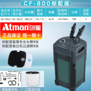 | CF-800 | 60–100cm freshwater tank | 100–150L | 960L/H | 6L | 3 | 12W |