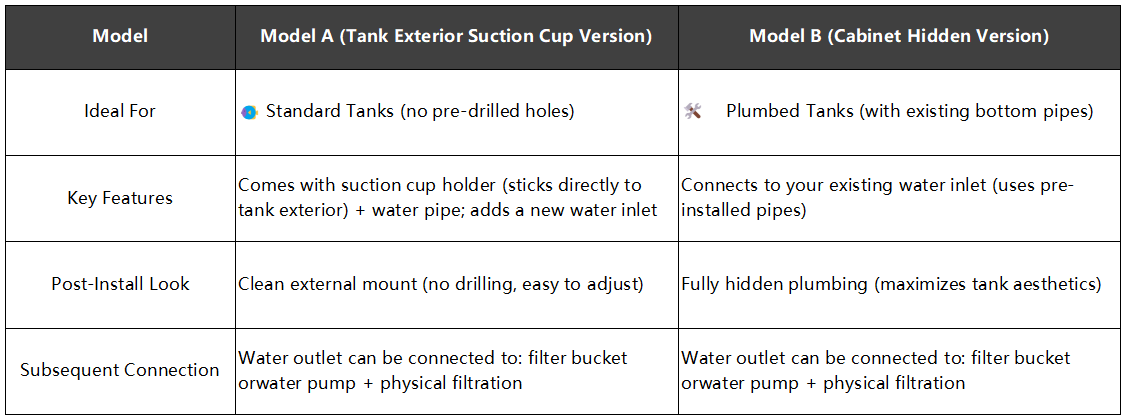 - Hassle-free setup: Model A installs via suction cup (5 mins, no tools); Model B connects to existing pipes;