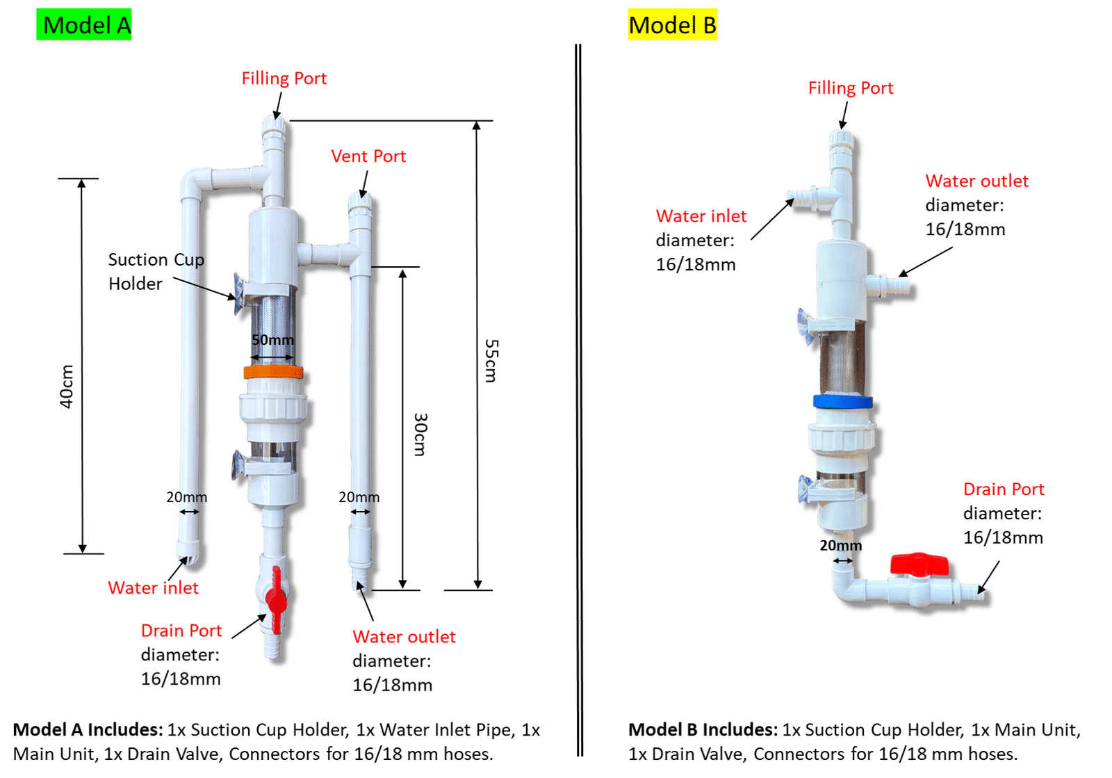 - Fits most standard fish tank pipes (16/18/20mm);